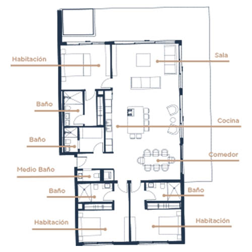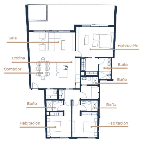 Los interiores exquisitamente terminados reflejan la modernidad fresca y las líneas sencillas y puras del diseño de Silver Beach. En cada residencia se aprecia una combinación de materiales nobles que inspiran una sensación de calidez, entre los que se destacan acatbados de madera y mármol. Cada detalle, desde lo estético hasta lo funcional, se ha considerado cuidadosamente y se integra con la perfección natural del diseño.